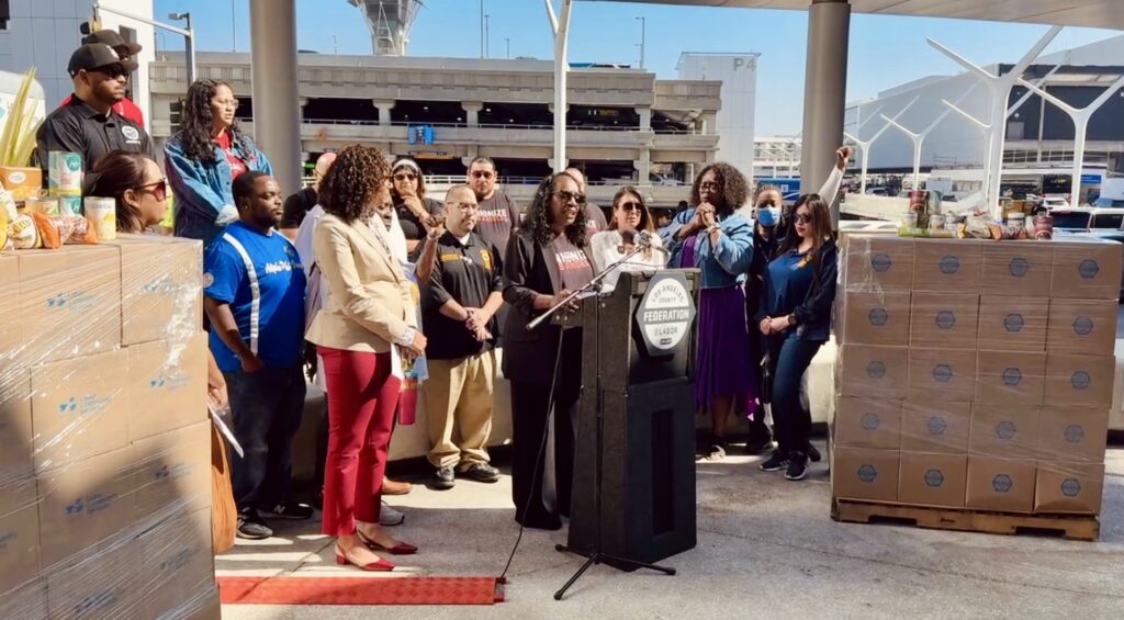 The LA Fed, in conjunction with Labor Community Services, joined by Democratic Members of Congress, held a press conference and distributed food boxes to federal workers at LAX who may be in need.